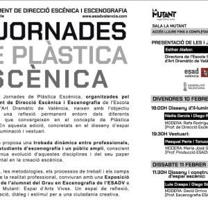 Desde el Departamento de Dirección Escénica y Escenografía de la ESAD de València hemos organizado las I JORNADES DE PLÀSTICA ESCÈNICA, un encuentro dinámico entre profesionales, docentes, estudiantes de escenografía y un público amplio.Será en LA MUTANT – ESPAI D’ARTS VIVES, VIERNES 10 FEB – 18h y SÁBADO 11 FEB – 11.30h.