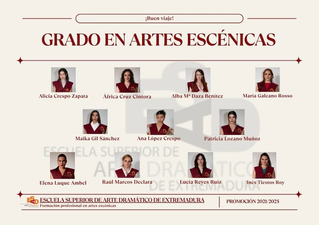 Leer más🎭CEREMONIA DE GRADUACIÓN PROMOCIÓN XIV: 2021-2025. ESAD EXTREMADURA📣Desde la ESAD de Extremadura estamos muy orgullosos de presentaros la orla de nuestras graduadas y graduado.🎉¡ENHORABUENA! 🎉¡Contamos Contigo! ¡Cuenta con la ESAD!@educacionext @cultura_ext @ayto_caceres#EsadExtremadura #Cultura #Teatro #Esad #TeatroEsadCapitol #Cáceres #Extremadura #Esadenred #CulturaExtremaduraℹ...