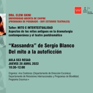 Hoy, la Doctora Elena Gkini nos ha hablado en el Taller de Mitos e intertextualidad de «Kassandra» de Sergio Blanco.