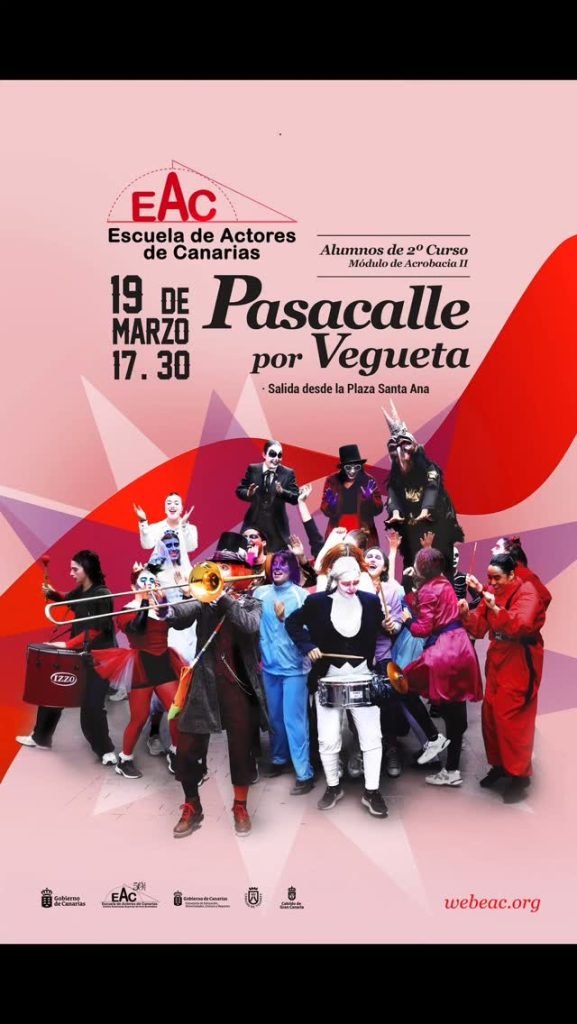Leer másPRÁCTICA PEDAGÓGICA DE TEATRO DE CALLE Miércoles 19 de marzo, a las 17.30 horas Vegueta - Las Palmas de GC.El alumnado de segundo curso del Centro Autorizado Superior de Arte Dramático de la Escuela de Actores de Canarias, dentro del marco...