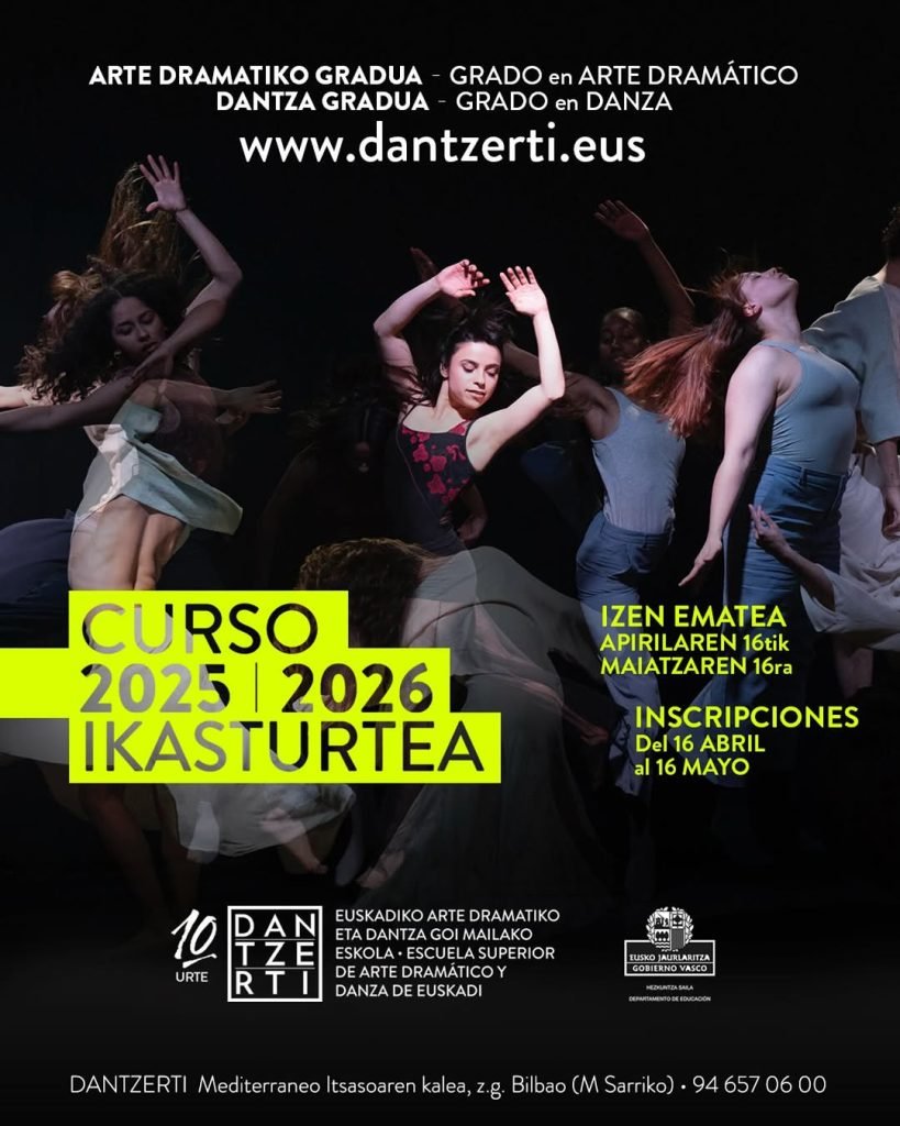 Leer más⚠️ ADI!!! Laster DANTZERTIko sarbide-probetan izena emateko epea zabalduko da.Informazio guztia eskuragarri duzue gure webgunean: www.dantzerti.eus.ℹ Zalantzarik baduzue, 946 57 06 00 telefonora dei dezakezue edo administraritza@dantzerti.eus-era idatzi.Ez galdu dantza edo antzerkia zure etorkizun bilakatzeko aukera! 🌈###⚠️ ¡ATENCIÓN!...